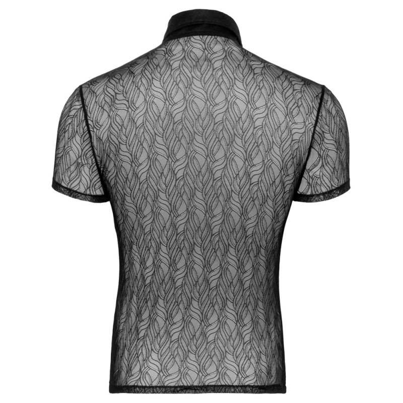 Enges, betonendes Halbarm-Hemd von Svenjoyment aus feiner weicher Stretch-Spitze. Mit Kragen und durchgehender Knopfleiste vorne.