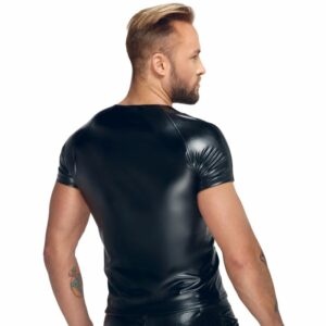 Betonendes Shirt von Noir im schwarzen matt glänzenden Powerwetlook. Kurze Ärmel und Schulterpartie in schillernder Schlangenhaut-Optik. Weich und elastisch für hautnahen Sitz und hohen Tragekomfort.