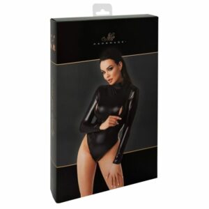 Hochgeschlossener Langarm-Body von Noir im angesagten schwarzen Powerwetlook. Weich und elastisch anschmiegsam für hohen Tragekomfort. In betonender Schnittführung mit langen, sorgfältig eingearbeiteten Reißverschlüssen über den Brüsten. Extra hohe Beinausschnitte setzen Po und Beine aufregend in Szene.