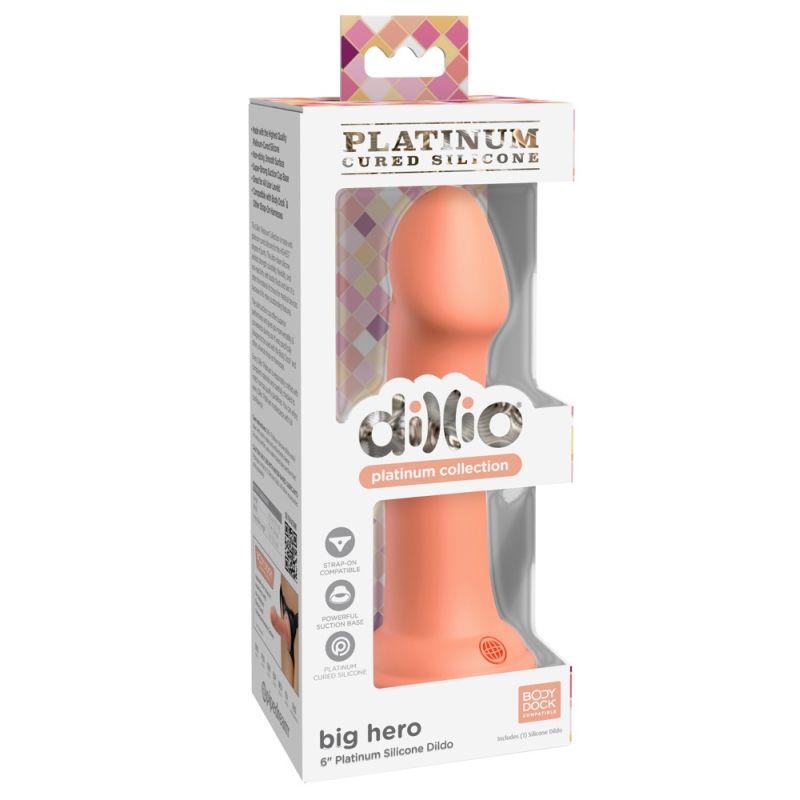 Biegsamer Dildo Big Hero von Dillio Platinum im schlicht-schönen, ideal gebogenen Design mit angedeuteter ausgeprägter Eichel. Mit starkem Saugfuß, der auf jeder glatten Oberfläche fest und sicher haftet und somit ein freihändiges Vergnügen ermöglicht. Somit ist der Dildo auch kompatibel mit Strap-ons und Harnessen.