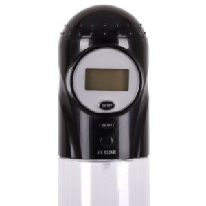 Erzeugen Sie mithilfe der automatischen Penispumpe mit rauchfarbener Manschette einen erregenden Unterdruck und sehen Sie dank des transparenten Zylinders dabei zu, wie Ihr Penis anschwillt. An der Zentimeterskala können Sie das Trainingsergebnis sofort ablesen. Am schwarzen Bedienteil wird das Potenz-Vakuum per ON/OFF-Knopf erzeugt, das getrennt von der Pumpe einschaltbare Display zeigt den Druck an, gemessen in PSI. Per AIR-RELEASE-Knopf können Sie jederzeit ganz bequem den Druck wieder ablassen. Gesamtlänge 31 cm, EInführtiefe 20 cm, Ø 2,2-7,2 cm. Material: TPE, ABS. Batterien bitte extra bestellen: 4 x Micro/AAA.
