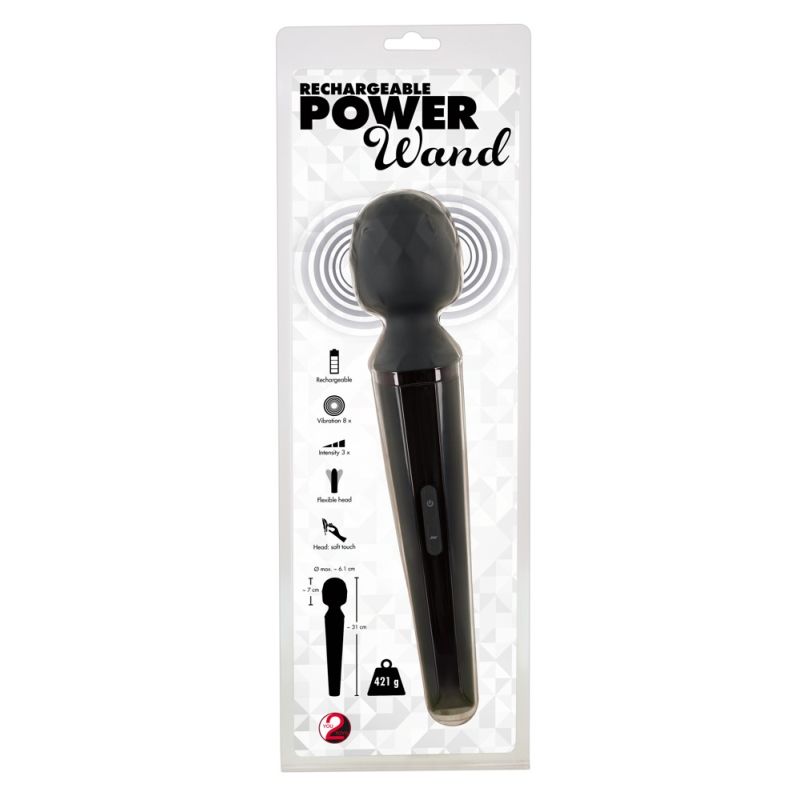 Wiederaufladbarer Massagestab mit großem, beweglichem Massagekopf aus Silikon. Sorgt mit 24 Vibrationsmodi für sinnliche Verwöhnmomente. Bequem steuerbar per Knopfdruck. Inklusive USB-Ladekabel.