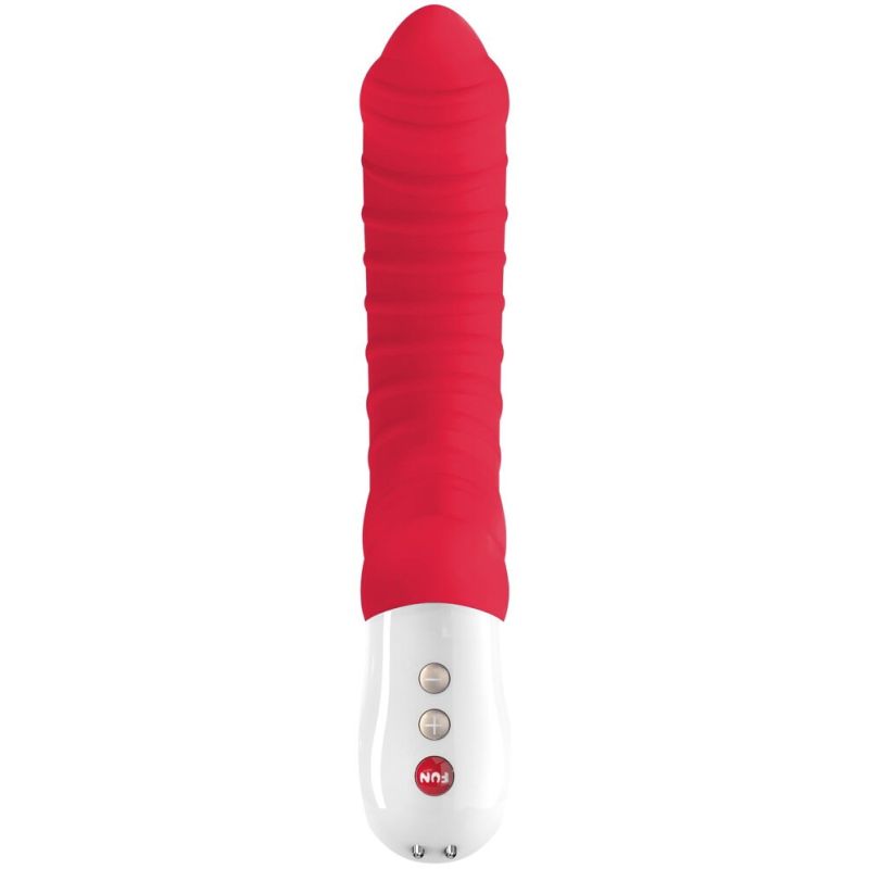 Angenehm biegsamer G-Punkt-Vibrator mit sinnlich gerilltem Schaft und praller Eichel. Ergonomisch gebogen für eine punktgenaue Stimulation. Die massive Basis massiert dazu kraftvoll die Klitoris. TIGER G5 eignet sich auch hervorragend zur Stimulation von Prostata und Perineum. Dazu sorgen 6 tieffrequente Vibrationsmodi in jeweils 6 Intensitäten für ein abwechslungsreiches Liebesspiel. Mit seidig zarter Textur und praktischer Ringhalterung. Wiederaufladbar mit dem beiliegenden Magnetic-Charger-Kabel.
